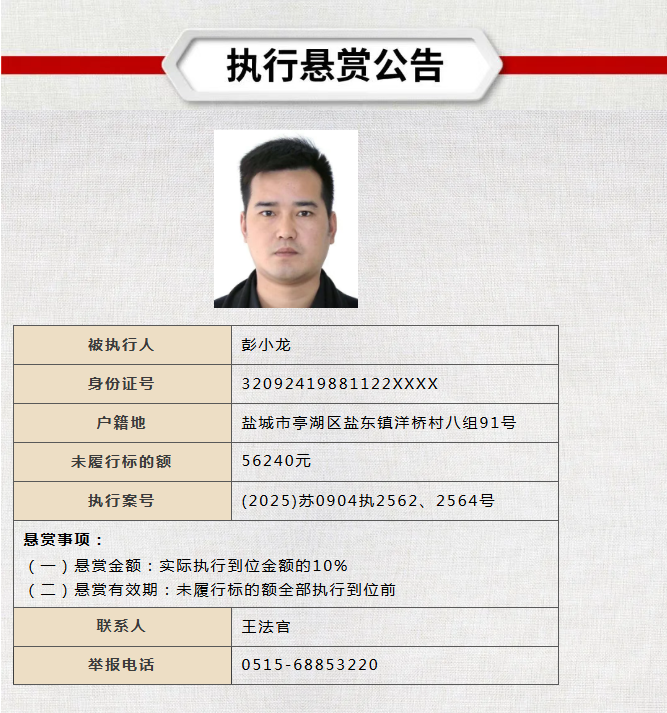 盐城这两个人欠钱不还!提供线索奖10%!