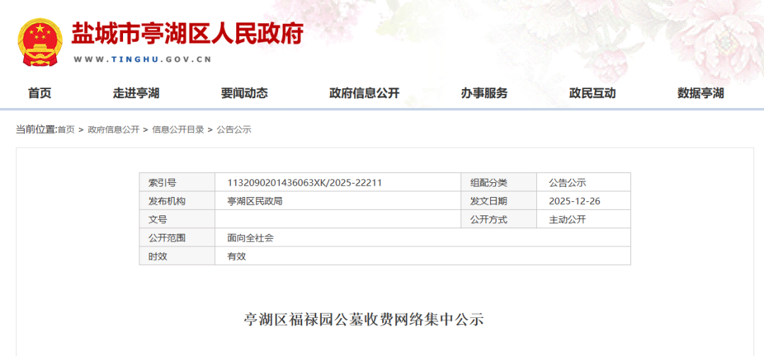盐城一公墓收费公示!
